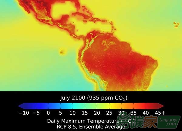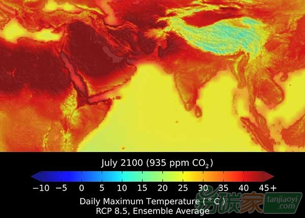 如果這一預測成為現(xiàn)實,,非洲、南美和印度的大部分國家或地區(qū)在7月份的日平均最高氣溫將超過45℃。就夏季最高氣溫而言,耶路撒冷、紐約、洛杉磯和孟買也將接近45℃,而倫敦將達到25℃左右,巴黎將達到30℃出頭。