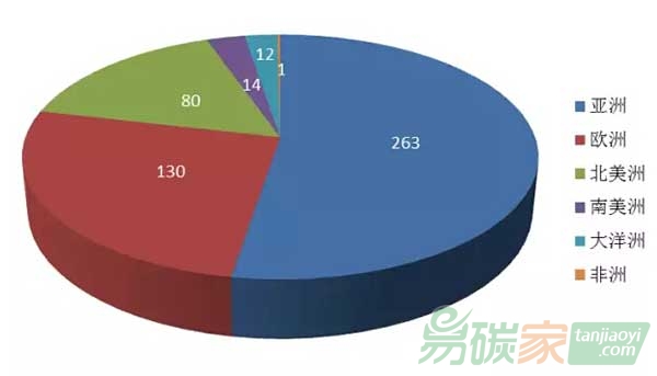 圖6  2015全球新能源企業(yè)500強各大洲入選企業(yè)數(shù)