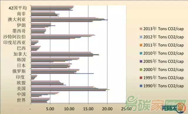 圖3.1990年-2013年世界上主要排放國(guó)和世界人均排放量
