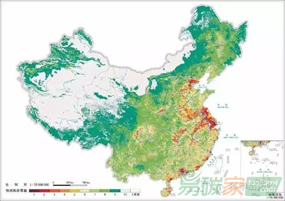 中國綜合自然災害風險等級(無臺灣省數(shù)據(jù))