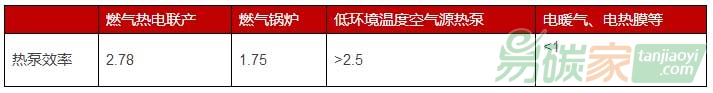 而且近幾年隨著變頻技術(shù)的快速發(fā)展,機組部分負荷下的性能得到大幅提升,這點在多聯(lián)機產(chǎn)品上已經(jīng)得到很好的驗證,變頻技術(shù)在低溫熱泵設(shè)備上的采用勢必會大幅度提升低環(huán)境溫度空氣源熱泵制熱綜合部分性能系數(shù),使其與燃氣熱電聯(lián)產(chǎn)相比擁有更明顯的性能優(yōu)勢。以上幾種方式的熱泵采暖效率如表1所示。