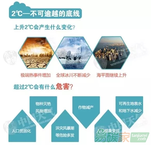 消息來源于國外一個網(wǎng)站的某個個人博客,參考數(shù)據(jù)引自WEATHERBELL ANALYTICS。給新來的童鞋劇情回放下:這里所說的2度,是指溫度升高到高于工業(yè)化前的地球平均表面溫度2攝氏度?!?度”是一條不可逾越的線。對于人類文明而言,這樣的變化可能造成很多毀滅性的后果。具體啥后果,一張圖告訴你: