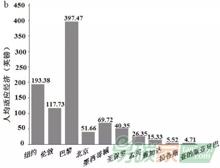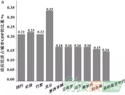 圖3 2014/15年全球十大城市人均適應(yīng)經(jīng)濟(jì)