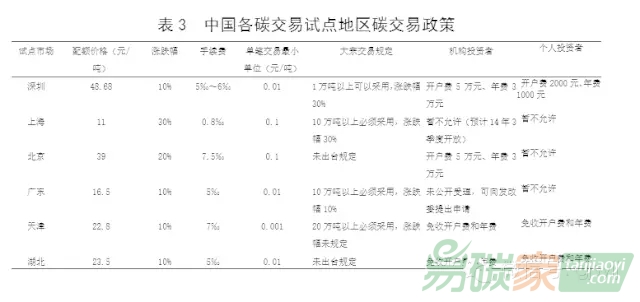 深圳雖然是試點(diǎn)省市中經(jīng)濟(jì)發(fā)達(dá)的地區(qū),但地理范圍小,沒(méi)有大型重工業(yè)企業(yè),第三產(chǎn)業(yè)居多,所以在納入門檻上設(shè)置的最嚴(yán),入圍的企業(yè)最多。此外,由于經(jīng)濟(jì)發(fā)展和政府思路的不同,各試點(diǎn)市場(chǎng)的交易規(guī)則各具特點(diǎn)。