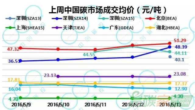 北京成交35.4萬噸,與前一周相比上升262%。上海成交80.5萬噸,與前一周相比上升12%。天津成交180噸,與前一周相比下降40%。廣東成交42.4萬噸,與前一周相比上升973%。湖北成交24.1萬噸,與前一周相比下降47%;湖北現(xiàn)貨遠(yuǎn)期成交2557萬噸。重慶無成交。截至2016年5月13日,七試點(diǎn)累計(jì)成交6983萬噸,累計(jì)成交額17.9億元。