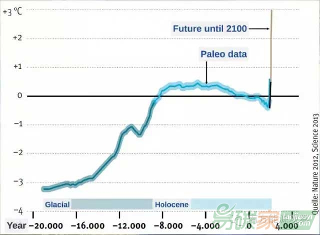 近百年以來,地球正在面臨著緊迫的氣候變化過程。下面這張圖是兩萬年以來溫度升高趨勢。地球氣候系統(tǒng)有一個規(guī)律性的交替,周期是十萬年左右。這張圖反映了近兩萬年溫度變化。