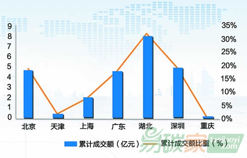 2016年碳交易各試點(diǎn)地區(qū)配額交易累計(jì)成交額