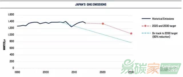 日本在2015年7月的自主貢獻文件中提到,在2030年以前實現(xiàn)溫室氣體減排量比2013年降低26%。日本國內(nèi)和國外的分析家都認為這個目標對日本來說非常容易,在現(xiàn)有的