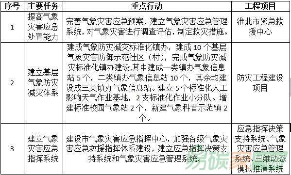 表5智慧氣象建設、氣象災害防御主要任務及重點行動表