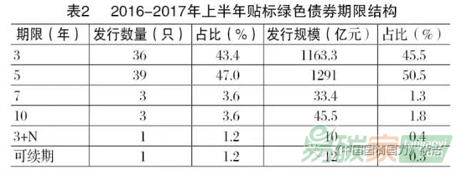(4)由于我國銀行體系的負(fù)債期限較短(平均為6個(gè)月),難以滿足建設(shè)周期長、投資回報(bào)期長的綠色項(xiàng)目的融資期限需求,因此從理論上來說,綠色債券是解決綠色項(xiàng)目融資期限結(jié)構(gòu)錯(cuò)配的有效手段,但實(shí)際情況卻不容樂觀(見表2)。