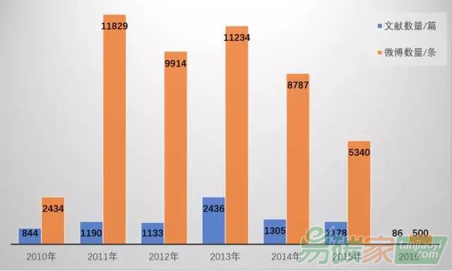 文章《中國低碳城市關(guān)注度研究》中提到,通過文獻(xiàn)計量和社交大數(shù)據(jù)挖掘的方法截至2016年為止,統(tǒng)計到包含“低碳”和“城市”的文獻(xiàn)共8574篇,新浪微博51081條。