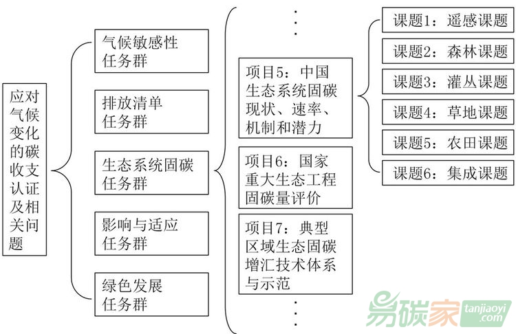 認證及相關(guān)問題”。該專項共設(shè)立了5個任務(wù)群,即排放清單任務(wù)群、生態(tài)系統(tǒng)固碳任務(wù)群、氣候敏感性任務(wù)群、影響與適應(yīng)任務(wù)群和綠色發(fā)展任務(wù)群,針對我國的陸地碳收支定量認證、碳增匯潛力與速率、增匯技術(shù)與措施,以及未來全球增暖情景與大氣溫室氣體濃度關(guān)系的不確定性等重大科學技術(shù)問題展開深入研究。