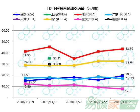 和廣東的成交價格介于16-20元/噸之間;重慶成交均價12元/噸。上周天津無成交。 在近兩周發(fā)生連續(xù)交易的市場內(nèi),各配額市場的價格走勢繼續(xù)保持平穩(wěn),相比深圳市場成交均價較前一周上浮約30%,北京、廣東、湖北、福建市場的表現(xiàn)更為穩(wěn)定,價格浮動范圍均不超過15%,其中廣東市場的成交均價最為穩(wěn)定,浮動率僅為2%。