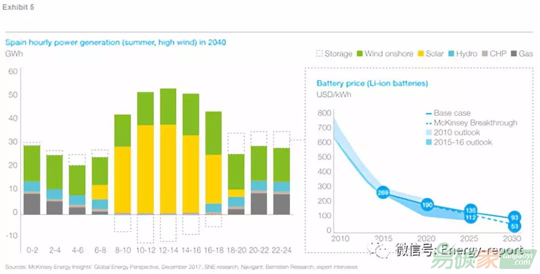 電力行業(yè)將如何應(yīng)對需求變化和供應(yīng)間歇性?到2050年,太陽能和風(fēng)能的作用將會顯著增加,盡管其增長的程度在不同國家之間會有很大差異。例如,在德國,他們的發(fā)電總份額將超過60%。這將需要投資于儲能技術(shù)開發(fā)和傳輸基礎(chǔ)設(shè)施,以及對系統(tǒng)監(jiān)管進(jìn)行適當(dāng)?shù)母隆T谶^去的幾年里,可再生能源的成本已經(jīng)比以前水平下降了一定比例。過去十年,太陽能光伏發(fā)電的成本下降了85%。同樣強勁的電池成本下降,進(jìn)一步強化了可再生能源成本下降的影響。到2020年,電池組的成本有可能低于每千瓦時100美元。因此,我們預(yù)計電力部門將以三種方式應(yīng)對間歇性供電:首先,電池的儲存將發(fā)揮很大的作用。特別是在太陽能條件最優(yōu)的地區(qū),我們相信電池存儲和太陽能光伏的結(jié)合將在未來10-15年變得具有成本競爭力,這取決于當(dāng)?shù)氐臈l件(見下圖)。