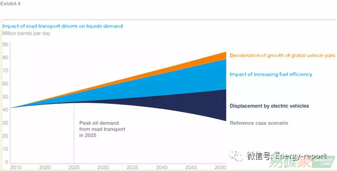 政策在鼓勵零排放汽車的同時,對ICE汽車的使用和銷售進(jìn)行限制。隨著向清潔發(fā)電的平行過渡,我們預(yù)計電動汽車的需求只會增加。在短期內(nèi),效率的提高和高速增加的發(fā)達(dá)國家汽車保有量,將在道路交通的液體需求峰值背后發(fā)揮關(guān)鍵作用。我們預(yù)計,在石油需求總量達(dá)到峰值之前的2025年,液體需求將達(dá)到峰值。
