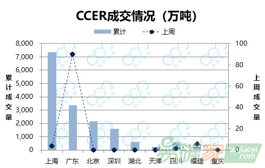 四川市場CCER成交1.1萬噸;北京、深圳、湖北、天津、重慶市場CCER無成交。