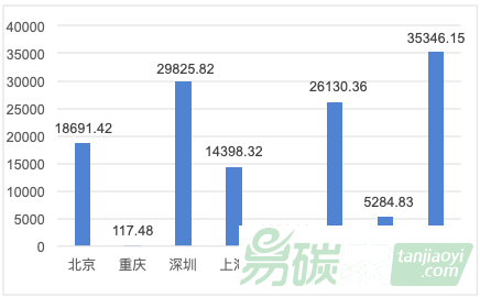 四川外的八個(gè)試點(diǎn)累計(jì)成交量近6,700萬(wàn)噸,累計(jì)成交金額約16億元,其中各試點(diǎn)的交易量和交易價(jià)格差距較大:廣東、