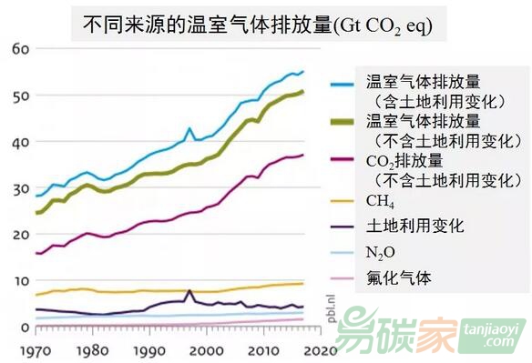 2018年12月5日,荷蘭環(huán)境評(píng)估署(PBL)發(fā)布的《全球二氧化碳和溫室氣體排放趨勢(shì)報(bào)告:2018年》(Trends in Global CO2 and Total Greenhouse Gas Emissions: 2018 Report)顯示,2017年全球溫室氣體排放量正在以1.3%的速度增加,達(dá)到了50.9 Gt CO2eq(十億噸二氧化碳當(dāng)量)。