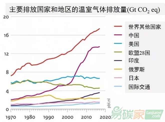 圖2 主要排放國(guó)家和地區(qū)的溫室氣體排放量