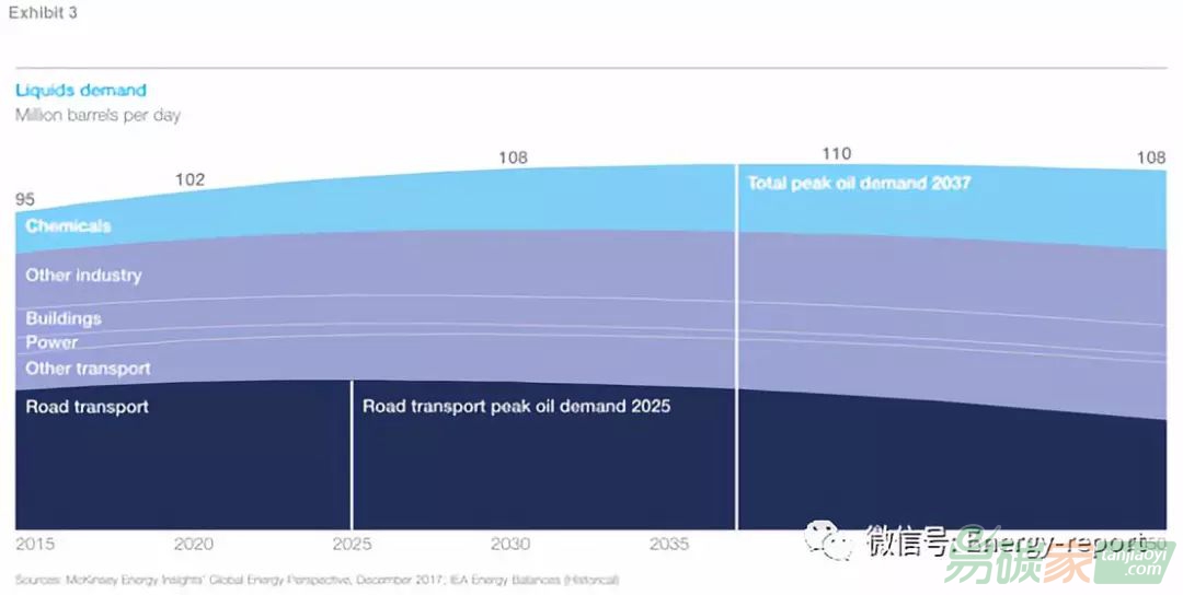 為什么你預計石油需求會達到峰值,正如你預計人口和人均GDP會增長?我們預計石油需求將在2037年達到峰值,約為每天1.1億桶。拐點背后的關(guān)鍵驅(qū)動因素與道路