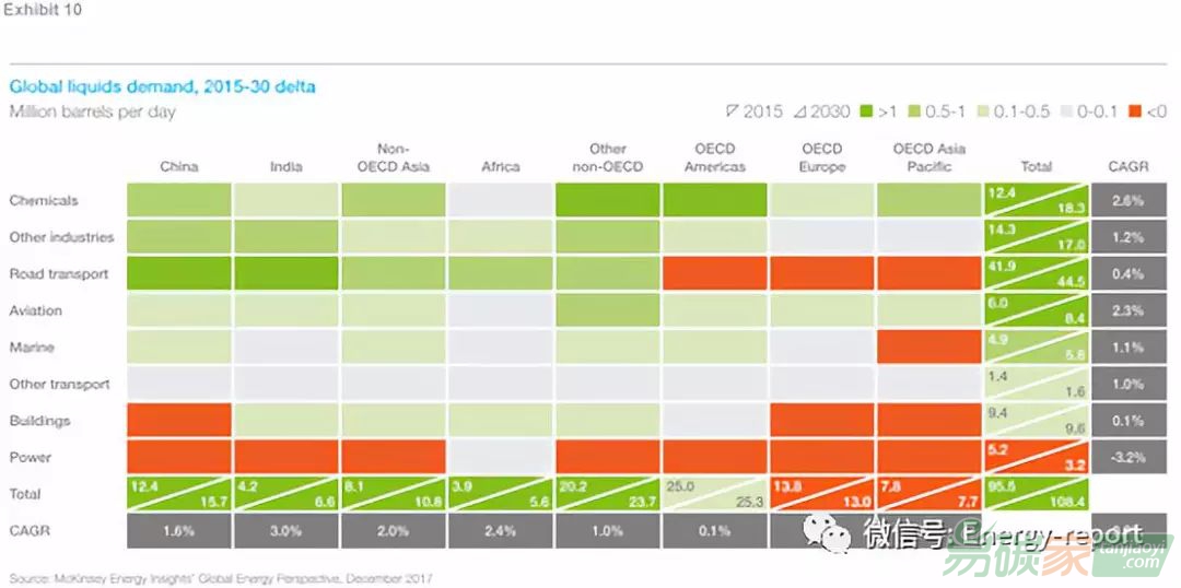 政策在鼓勵零排放汽車的同時,對ICE汽車的使用和銷售進行限制。隨著向清潔發(fā)電的平行過渡,我們預計電動汽車的需求只會增加。在短期內(nèi),效率的提高和高速增加的發(fā)達國家汽車保有量,將在道路交通的液體需求峰值背后發(fā)揮關(guān)鍵作用。我們預計,在石油需求總量達到峰值之前的2025年,液體需求將達到峰值。
