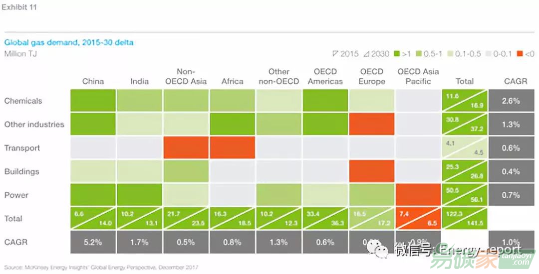 化工行業(yè)的化石燃料需求相對于其他行業(yè)增長如此之快?到2030年,化工行業(yè)的化石燃料消耗將推動石油需求增長近一半,天然氣需求增長逾四分之一。原因在于,它與全球GDP增長高度相關(guān),而且以石油化工為基礎的原料的具有成本競爭力的替代品數(shù)量有限?;ば袠I(yè)將是未來幾十年油氣需求增長的關(guān)鍵驅(qū)動力。盡管它在2015年僅占石油和天然氣消費的13%和9%,但到2030年,它將分別為這兩種燃料的需求增長貢獻46%和28%。我們預計,盡管全球石油需求將在2037年達到峰值,化工行業(yè)將在2030- 2050年間保持這一趨勢。