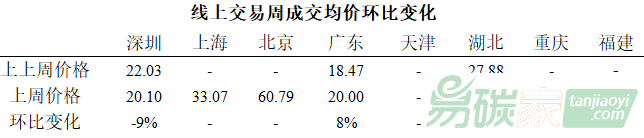 四川市場繼續(xù)保持活躍,累計(jì)成交2.7萬噸;上周廣東、北京、深圳、湖北、天津、重慶CCER市場無成交。
