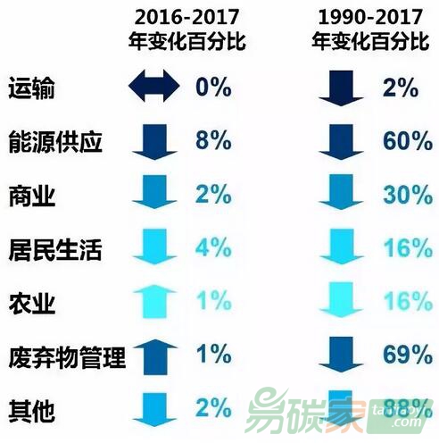 運輸部門(27%),其次為能源供應(yīng)(24%)、商業(yè)(17%)、居民生活(15%)、農(nóng)業(yè)(10%)、廢棄物處理(4%)和其他行業(yè)(2%)。