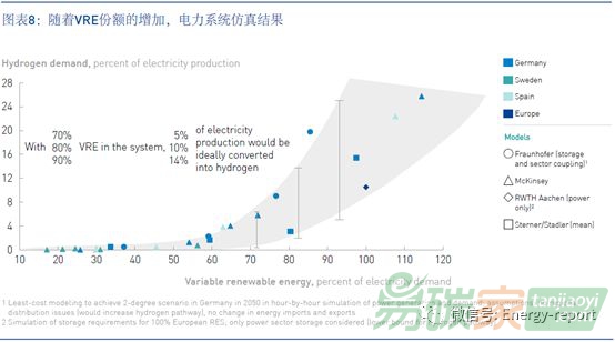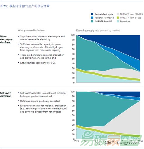 其次,氫能可實現(xiàn)跨部門、時間和地點靈活轉(zhuǎn)移能源,在向可再生能源轉(zhuǎn)型中發(fā)揮系統(tǒng)性作用部門。歐盟的能源轉(zhuǎn)型幾乎需要完全脫碳發(fā)電,這意味著需要將可再生能源整合到電網(wǎng)中。氫是終端用能耦合的唯一規(guī)?;夹g(shù),允許將發(fā)電轉(zhuǎn)換為可用形式,存儲它,并將其輸送到終端使用部門以滿足需求。電解槽可以將可再生電力轉(zhuǎn)化為一種具有所有靈活性但不排放任何天然氣碳的氣體。時間。由于電力滿足了更高的能源需求,而不斷增加的能源來自可再生能源,短期和長期的供需失衡將加劇。這就需要增加全年的平衡和季節(jié)性儲能。雖然電池和需求方措施可以提供短期靈活性,但氫是唯一可用于長期儲能的大規(guī)模技術(shù)。 它可以利用現(xiàn)有的天然氣網(wǎng)絡,鹽穴和貧瘠的氣田,以較低的成本長期儲存能源。地點。氫提供了低成本可再生能源地區(qū)與需求中心地區(qū)之間的聯(lián)系,例如,將歐洲北部地熱和風能資源豐富的地區(qū)連接到主要大陸,或作為從北非進口可再生能源的手段。氫可以通過管道、船只或卡車遠距離輸送能量,無論是氣態(tài)的、液化的還是以其他形式儲存的,其成本遠低于輸電線路。第三,向氫的轉(zhuǎn)變符合客戶的偏好和便利性。這是關(guān)鍵,因為不符合客戶偏好的低碳替代品可能面臨采用困難。在運輸過程中,氫提供與內(nèi)燃機汽車同樣的續(xù)航里程和燃料補給速度。能源公司可以利用現(xiàn)有的管道將氫氣或合成甲烷通過電力輸送到天然氣發(fā)電廠,從而將開關(guān)“隱形”給消費者。雖然后來改用100%氫氣需要升級設備和管道,但它仍然使建筑物內(nèi)現(xiàn)有的供熱基礎設施完好無損。