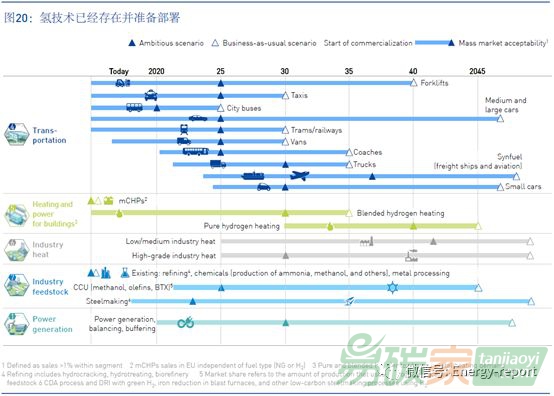 碳強度的氫。上述天燃氣網(wǎng)無碳氫目標或cfds/fits(見建議3)將激勵電解行業(yè)產(chǎn)生所需投資。從電解中集中生產(chǎn)氫氣和為電網(wǎng)提供穩(wěn)定性的分散式解決方案都應得到充分的激勵。原產(chǎn)地保證(gos),如來自certifHy項目的保證,應被法規(guī)和國家政策制定者使用和接受。對于采用CCS技術(shù)的SMR,利益相關(guān)者應考慮支持行業(yè)規(guī)模的示范項目,然后制定未來部署的路線圖。支持和啟用額外的氫應用8、行業(yè)和監(jiān)管利益相關(guān)者應繼續(xù)開發(fā)更多的氫和燃料電池應用,并計劃擴大已成功證明的應用。例如,最近氫氣列車的成功應該是歐洲范圍內(nèi)替代柴油列車的開始。在航運方面,除國際海事組織的海運目標外,監(jiān)管機構(gòu)還應制定港口、河流和湖泊的脫碳目標,并支持氫燃料加注能力的推廣。推進微熱電聯(lián)供(MCHPS)和熱電聯(lián)產(chǎn)(CHPS)在住宅和商業(yè)物業(yè)中的應用,應提高建筑的能源效率,充分利用氫氣和天然氣。本報告旨在證明氫是能源轉(zhuǎn)型的關(guān)鍵支柱,歐洲可以引領氫工業(yè)的發(fā)展。 獲得這些收益將需要大規(guī)模擴大整個價值鏈的活動,但是,通過有針對性的干預措施,我們相信歐盟可以實現(xiàn)強化的良性循環(huán)。