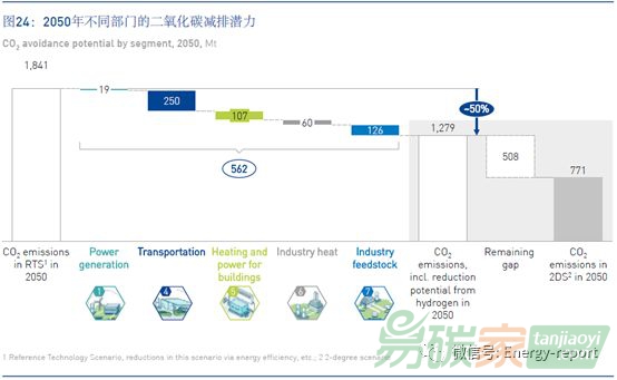 減排量的一半(見圖1)。歐盟需要在2050年將其二氧化碳排放量從目前的3,500Mt減少到770Mt。部署現(xiàn)有技術(shù)以及歐洲國家現(xiàn)有的能源和氣候相關(guān)承諾將縮小約60%的差距(參考技術(shù)方案約為1,700Mt)。在終端部門使用氫氣有助于減少剩余1100Mt的一半,并實現(xiàn)2度方案。此外,它還可以使電力部門實現(xiàn)深度脫碳,從而間接減少碳排放。除了減少碳排放外,氫和燃料電池技術(shù)的部署將消除當?shù)氐呐欧?。在運輸方面,2050年每年的氮氧化物排放量可減少50Mt。河流,湖泊和港口污染較少,