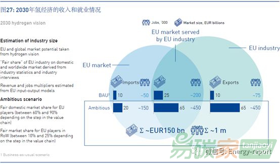 市場,作為在新的氫經(jīng)濟中進行全球競爭的跳板。2030年的出口潛力預計將達到700億歐元,凈出口額將達到500億歐元。總的來說,到2030年,歐盟氫工業(yè)可以為大約100萬高失業(yè)工人提供就業(yè)機會,到2050年達到540萬人。