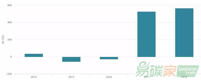 2014-2018年全球二氧化碳排放變化(來源:IEA)
