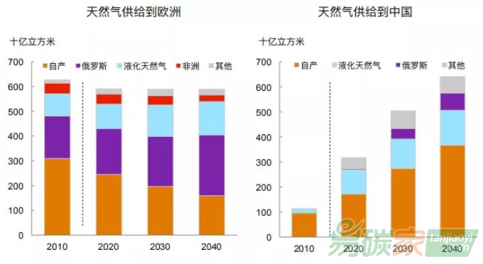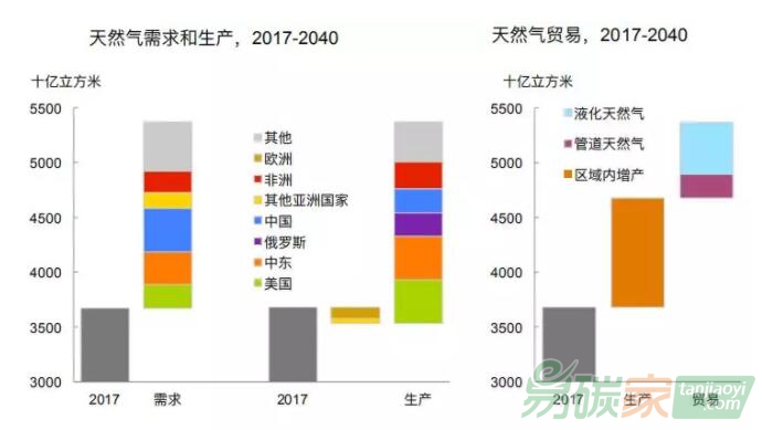 ◆ 在中國,盡管國內(nèi)天然氣產(chǎn)量大幅提升,但需求增長大于供應增長,導致2040年進口依存度上升超過40%。半數(shù)進口增量將由俄羅斯和其他獨聯(lián)體國家的管道氣來滿足,剩余增量來自液化天然氣。