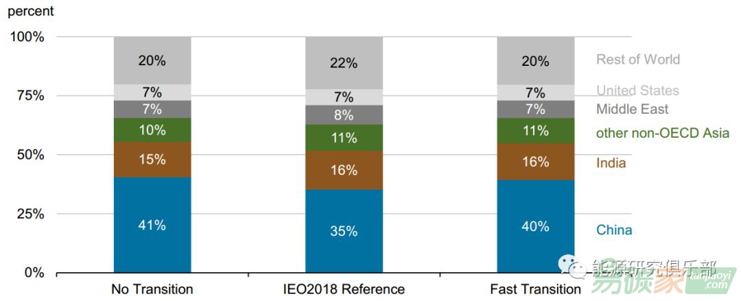 圖19 2040年全球能源密集型部門總產(chǎn)出的地區(qū)占比三