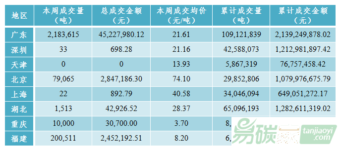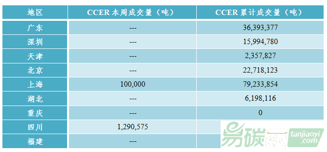四川碳市場(chǎng)本周CCER成交129.06萬(wàn)噸。天津碳市場(chǎng)本周未成交。