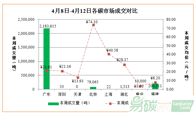 北京碳市場(chǎng)本周成交配額7.91萬(wàn)噸(含協(xié)議轉(zhuǎn)讓6.50萬(wàn)噸),成交均價(jià)為74.10元/噸,較上周上漲5.32%。