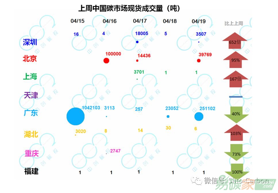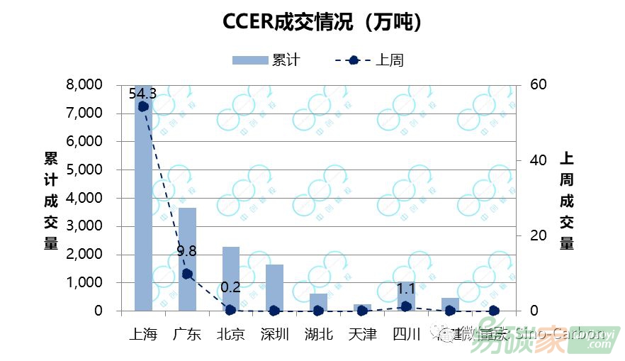 ccer市場:2019年4月15日-4月19日,上海CCER市場表現(xiàn)最為活躍,共計成交54.3萬噸;其次為廣東,成交近10萬噸;