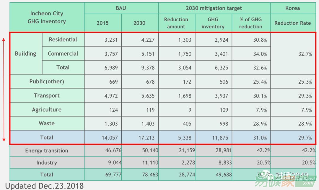 2016年,韓國自愿承諾實施20年氣候變化計劃,目標(biāo)是到2030年減少溫室氣體排放25.3%(BAU)。2018年,在修訂國家溫室氣體排放路線圖后,仁川將其減緩目標(biāo)提高至31.0%。