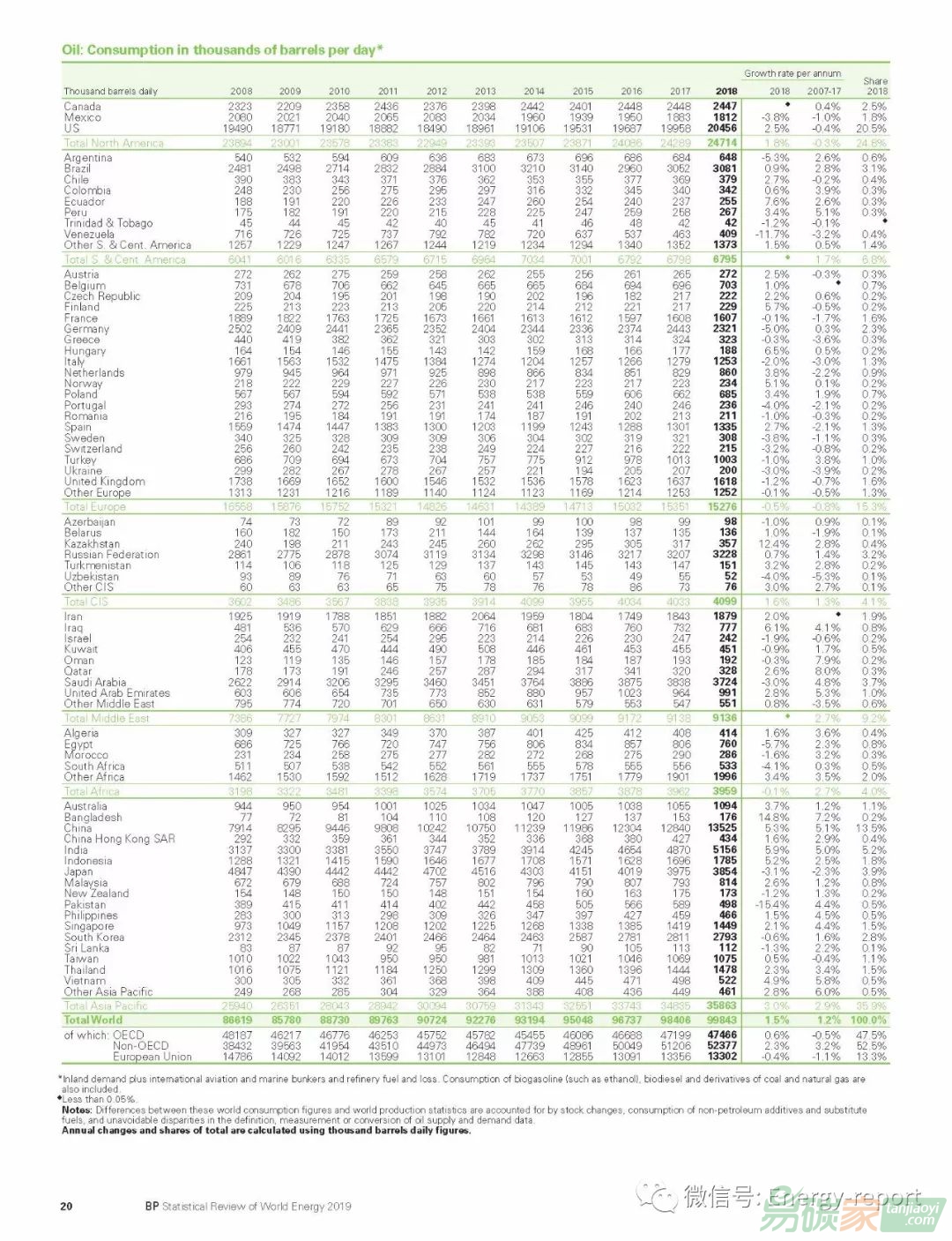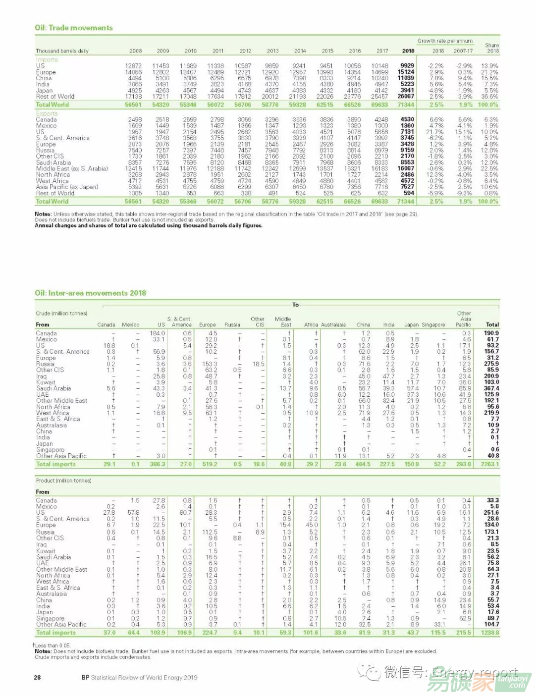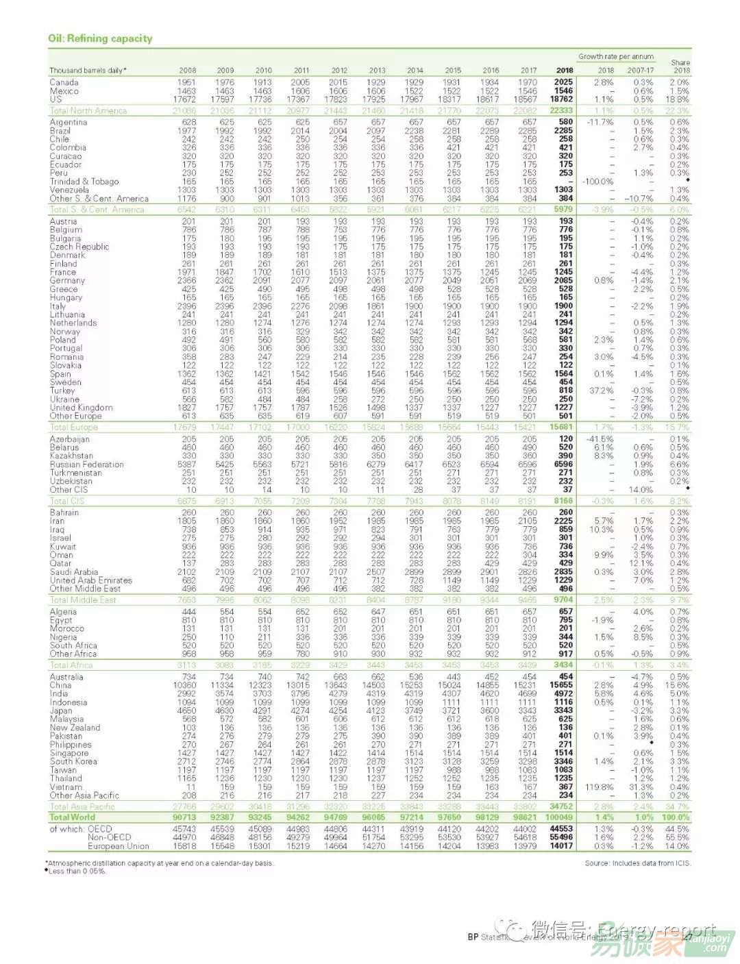 —全球石油產(chǎn)量增長了220萬桶/日,幾乎所有的凈增長都來自美國造,其產(chǎn)量增長(220萬桶/日)創(chuàng)下了世界紀錄。在其他地區(qū),加拿大(41萬桶/日)和沙特阿拉伯(39萬桶/日)的產(chǎn)量增長被委內(nèi)瑞拉(-5萬桶/日)和伊朗(-31萬桶/日)的下降所抵消?!獰捰蛷S的產(chǎn)量上升至96萬桶/日,但相較2017年的150萬桶/日有所下降。然而,煉油廠的平均產(chǎn)能利用率攀升至2007年以來的最高水平。石油產(chǎn)量