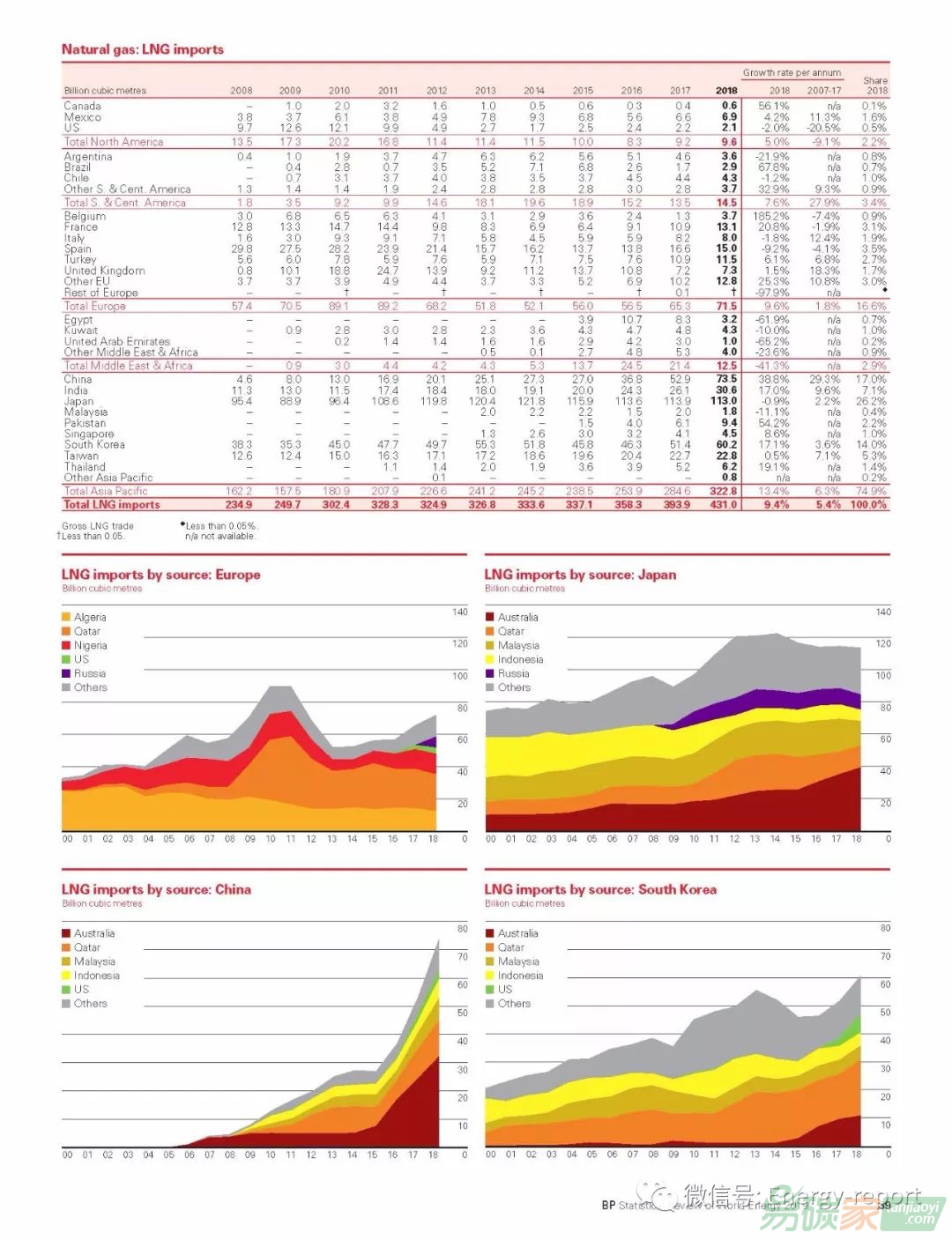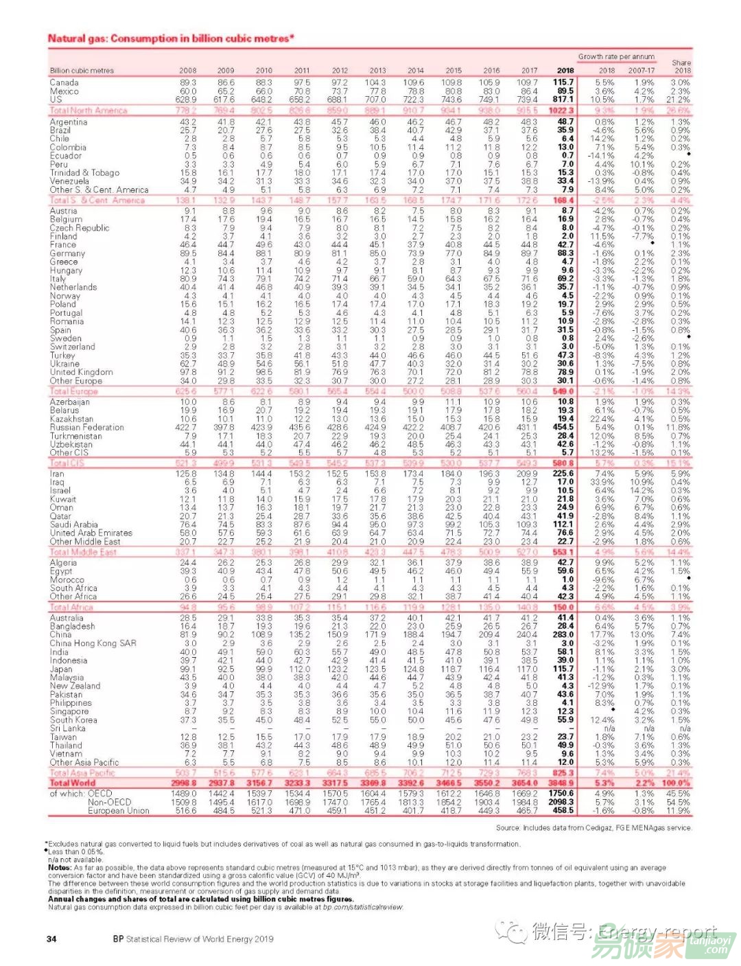 —天然氣消費量增長了1950億立方米,即5.3%,是1984年以來最快增速之一?!烊粴庀M的增長主要是由美國(780億立方米)推動的,中國(430億立方米)、俄羅斯(230億立方米)和伊朗(160億立方米)也提供了支持?!蛱烊粴猱a(chǎn)量增加了1900億立方米,即5.2%。其中近一半來自美國(860億立方米),美國(與石油產(chǎn)量一樣)實現(xiàn)了歷史上最大的年增長率。俄羅斯(340億立方米)、伊朗(190億立方米)和澳大利亞(170億立方米)緊隨其后?!獏^(qū)域間天然氣貿(mào)易增長了390億立方米,即4.3%,是10年平均水平的兩倍以上,主要原因是液化天然氣(LNG)繼續(xù)迅速擴張。—液化天然氣供應(yīng)增長主要來自澳大利亞(150億立方米)、美國(110億立方米)和俄羅斯(90億立方米)。中國約占進口增長的一半(210億立方米)。天然氣產(chǎn)量