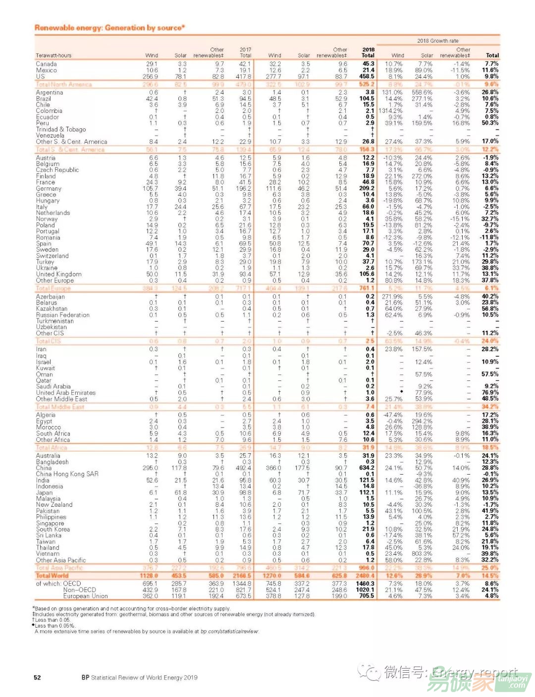 —可再生能源同比增長14.5%,略高于歷史平均水平,盡管其增量(7100萬噸油當(dāng)量)接近2017年(破紀錄的增長)。—太陽能發(fā)電增長了3000萬噸油當(dāng)量,略低于風(fēng)力發(fā)電(3200萬噸油當(dāng)量)的增長,并提供了40%以上的可再生能源增長。
