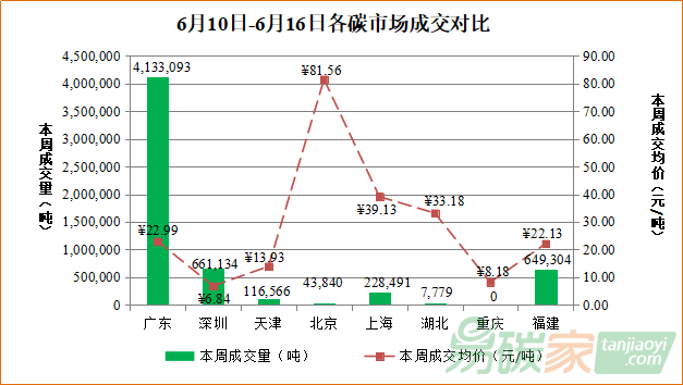 北京碳市場本周成交配額4.38萬噸(含協(xié)議轉讓2萬噸),成交均價為81.56 元/噸,較上周上漲6.38%;CCER成交3.04萬噸,含協(xié)議轉讓1萬噸。