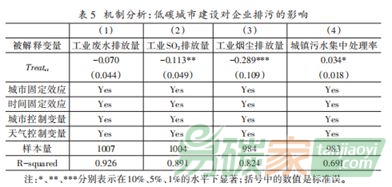 五、機(jī)制分析與分解(一)機(jī)制分析以上研究表明,低碳城市試點顯著地降低了所在地區(qū)的空氣污染,那么,其具體的傳導(dǎo)機(jī)制是什么呢,換而言之,政府低碳政策通過影響哪些關(guān)鍵變量來改變空氣污染水平?根據(jù)低碳城市試點方案的政策實施細(xì)節(jié),本文將從企業(yè)排污行為、工業(yè)產(chǎn)業(yè)結(jié)構(gòu)、城市產(chǎn)業(yè)創(chuàng)新升級以及城市交通網(wǎng)絡(luò)幾方面來綜合考察低碳城市試點提高環(huán)境質(zhì)量的具體機(jī)制。