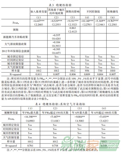 四、實證分析在這一節(jié)中,本文首先報告雙重差分法實證回歸結(jié)果,即:低碳城市建設(shè)對空氣污染的影響,然后對一系列實證假設(shè)與穩(wěn)健性問題進(jìn)行檢驗。
