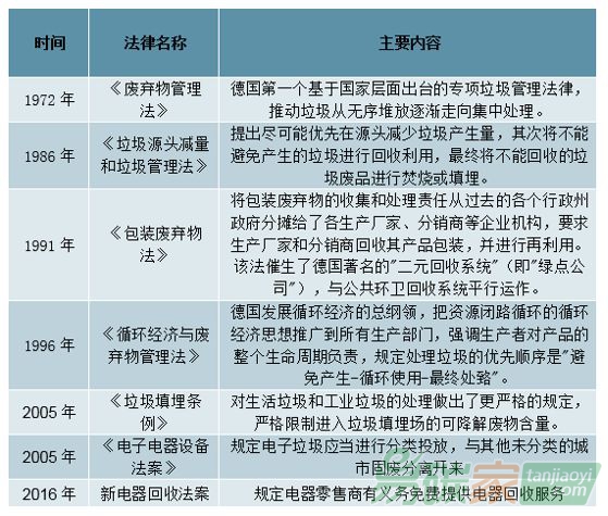 德國(guó)較為完善的垃圾管理法律體系,在很大程度上促進(jìn)了德國(guó)資源循環(huán)利用和垃圾集中分類管理,并由此實(shí)現(xiàn)垃圾源頭減量,推動(dòng)垃圾分類管理工作有效進(jìn)行。