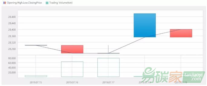 2019年07月15日至2019年07月21日,韓國碳市場價(jià)格在穩(wěn)定在28250-28400韓元/噸(約24.00-24.13美元/噸)。