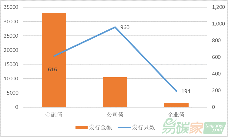 (二)發(fā)行品種:各綠債品種發(fā)行規(guī)模同比普遍增長,綠色公司債發(fā)行規(guī)模超過金融債