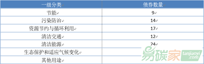 表1 2019年上半年綠色債券募集資金用途及其債券數(shù)量