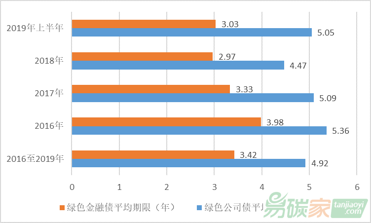 期限錯配問題是綠色金融發(fā)展的一大挑戰(zhàn)??傮w來看,2016年貼標(biāo)綠色債券市場啟動以來,綠色公司債券發(fā)行平均期限為4.92年,綠色金融債平均期限為3.42年。